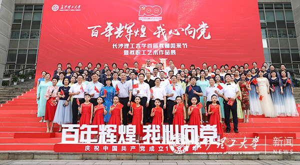 7月2日下午,长沙理工大学举办“百年辉煌 我心向党”首届教师风采节暨教职工艺术作品展,通过数十件红色建筑模型、百幅艺术作品、千人诵读经典、万名师生线上线下共同参与等多种方式,庆祝党的百年华诞。校党委书记付宏渊、校长曹一家等全体校领导和万名师生共同献上美好祝福。