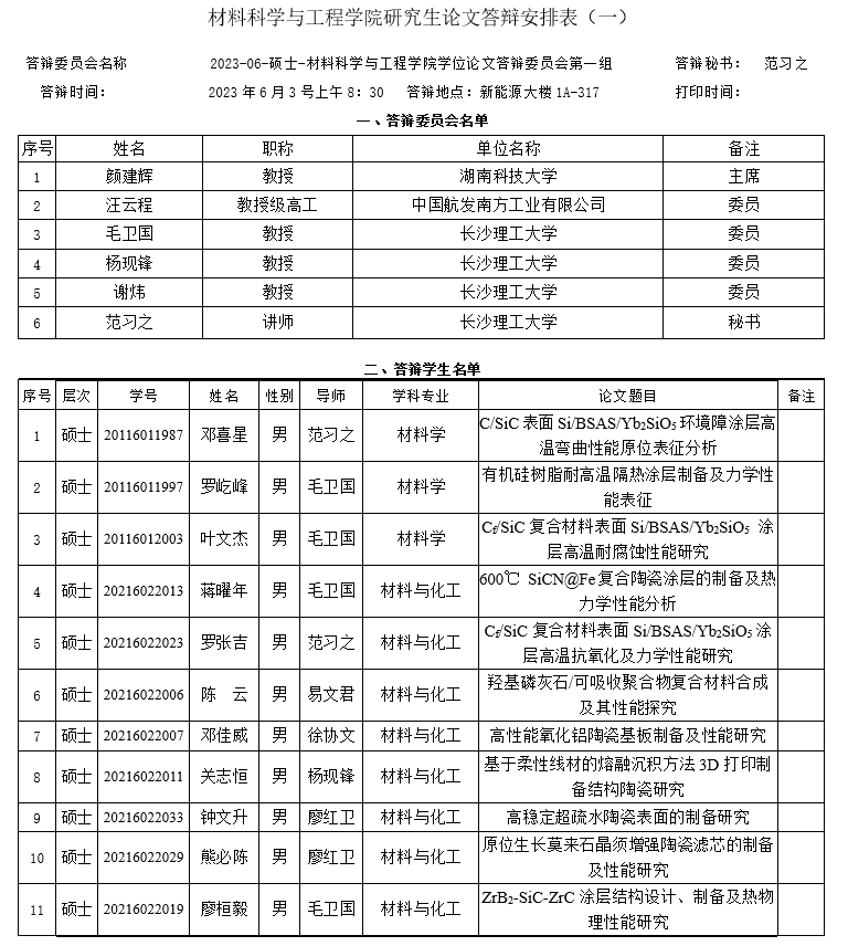 材料科学与工程学院第二组答辩安排表