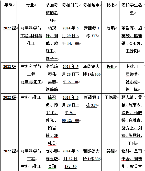 长沙理工大学材料科学与工程学院研究生中期考核安排表(更改)