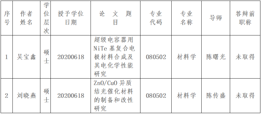 根据《关于转发2022年湖南省优秀博士、硕士学位论文评选相关文件及组织开展2022年校级优秀研究生学位论文评选工作的通知》,经学生自愿申请,学院学位评定分委员会进行审核并表决,现拟推荐吴宝鑫等二位同学的硕士学位论文参评2022年长沙理工大学校级优秀硕士学位论文。