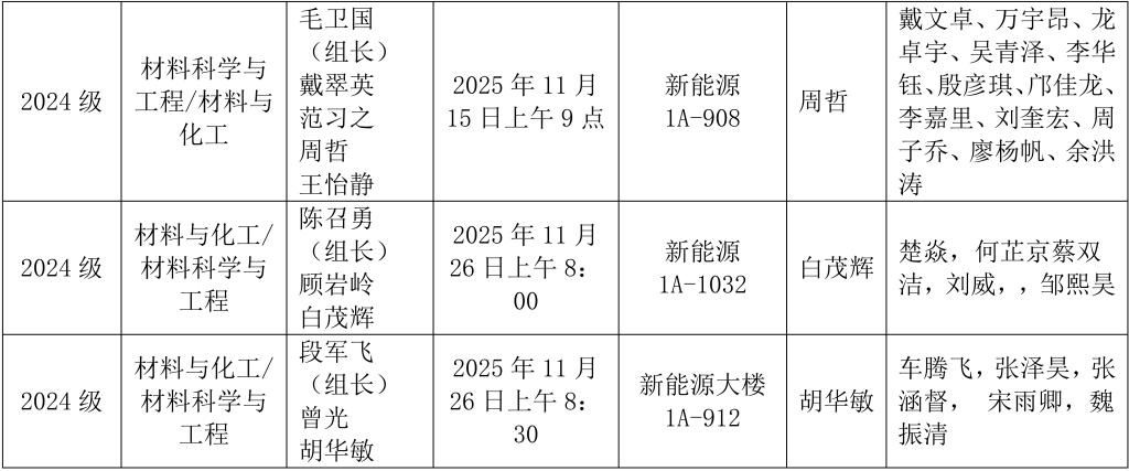 材料科学与工程学院2024级研究生中期考核安排表