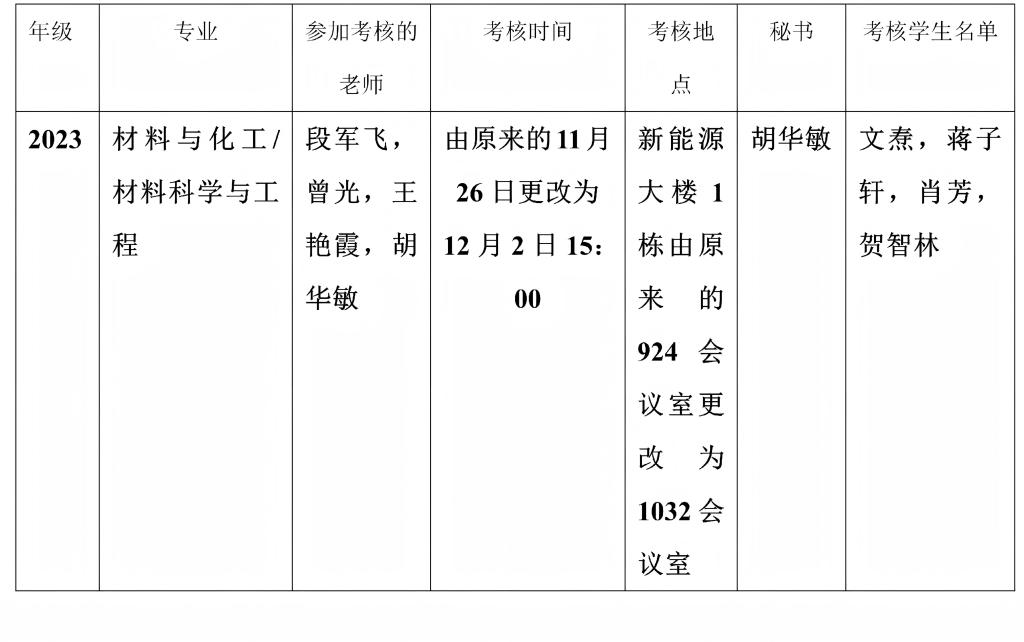 材料科学与工程学院2023级研究生中期筛选考核安排表