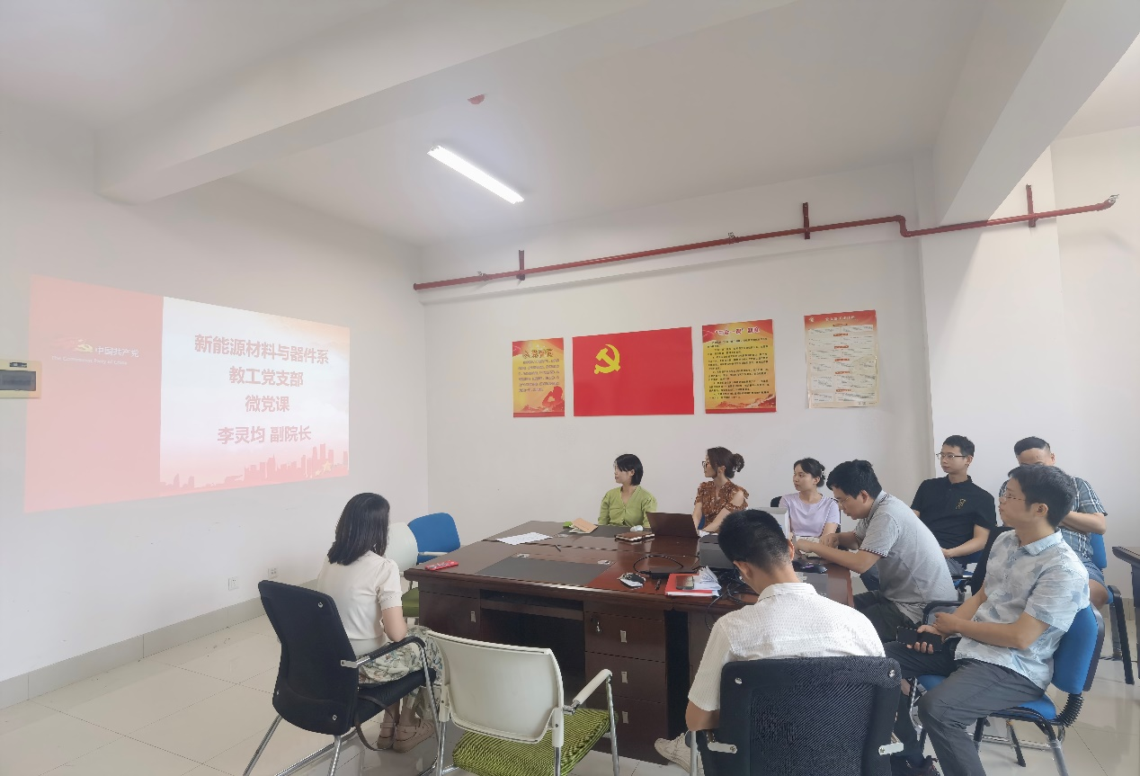 2023年6月20日下午,新能源材料与器件系教工党支部在新能源大楼1-305开展“以学正风 树立良好风气”主题党日活动,会议由党支部书记秦伟主持,支部党员参与。