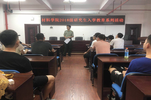 9月14日,材料学院在新能源大楼一栋A302举行“2018级研究生入学教育系列活动”之“专业知识讲座”,科研与研究生干事何小勇、研究生辅导员陈鑫林出席会议,2018级全体研究生新生参加。