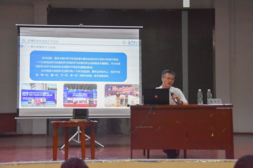 9月9日,副校长蒋昌波教授以“立鸿鹄志,做奋斗者”为主题为材料学院2019级全体新生讲授“第一课”。学院党总支副书记唐青、辅导员银波与2019级全体研究生、本科生新生参加。