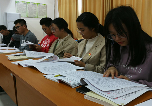 10月17日下午,长沙理工大学材料学院本科生党支部的主题教育支部会上,支部书记银波老师为学生党员们准备了一份“特殊礼物”——入党积极分子时写的第一份入党申请书。支部会上,银老师指导学生党员们学习《习近平关于“不忘初心、牢记使命”论述摘编》后,重读入党申请书和入党志愿书、重温入党誓词,并对照申请书中的内容,检视入党初心,结合“亮身份、担责任”的效果查找不足,特别是针对新时代青年大学生党员如何在思想价值引领上发挥辐射方面进行了深入的研讨。学生党员汪家豪边念着自己申请书上的内容,边进行自我批评,他说“我在组织帮助下改正了很多缺点,但入党后理论学习自觉性明显不够,我还要在党的创新理论的学思践悟上下功夫”。