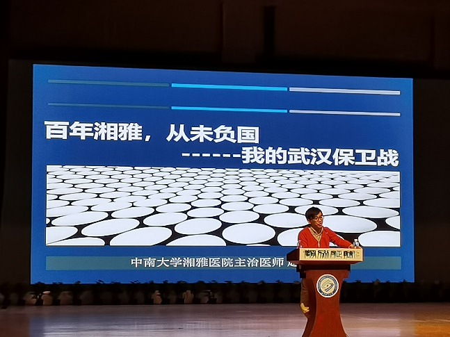 11月4日晚七点,材料学院与土木学院于共同举办的第十二届“云影讲坛—我的武汉保卫战”战疫事迹报告会在云塘校区大礼堂拉开帷幕。中南湘雅医院援鄂医疗队成员赵春光医生主讲,我院48名研究生与106名本科生分别以中共党员、发展对象、入党积极分子、团干、班长和团支书的身份同其余土木学院的同学在场聆听了这场特殊的报告会。