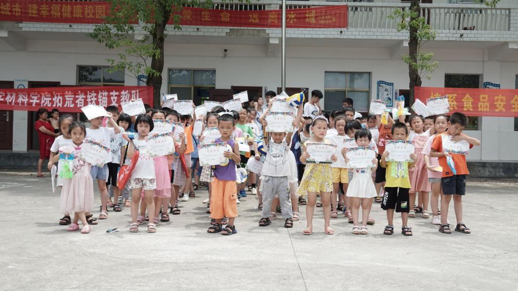 7月24日,材料学院赴益阳暑期三下乡实践团在支教地点-益阳市桃江县大栗港镇铁锚村铁锚小学举行趣味运动会,夏令营全体成员参与,共计六支参赛队伍。