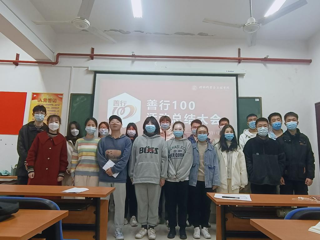 最后,材料学院于12月11日在新能源一号楼303教室召开总结会议。会议主要进行活动总结和表彰。本次“善行一百”活动,共募得善款8213元,学院获得最佳宣传奖,尹梦瑶、徐楠、杨晓彤、别晨倩四位同学获得优秀宣传作品奖。本次活动为贫困山区的孩子们送去冬日最动人的爱与温暖,也激发了广大同学参与志愿服务活动的积极性。
