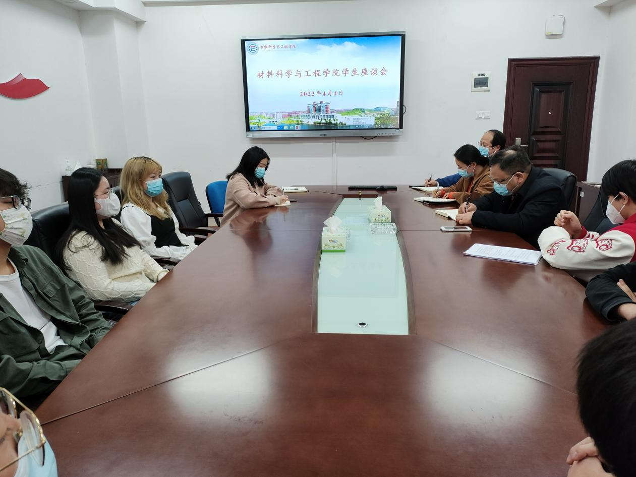 4月5日下午,材料学院在云塘校区新能源大楼一号楼317室举行师生座谈会,深入了解学生开学以来的思想动态和生活实际。学院党总支书记唐超文出席,副院长杨现锋、副书记陈华、年级辅导员谢易真、陈鑫林和20余名研究生和本科生代表参会。