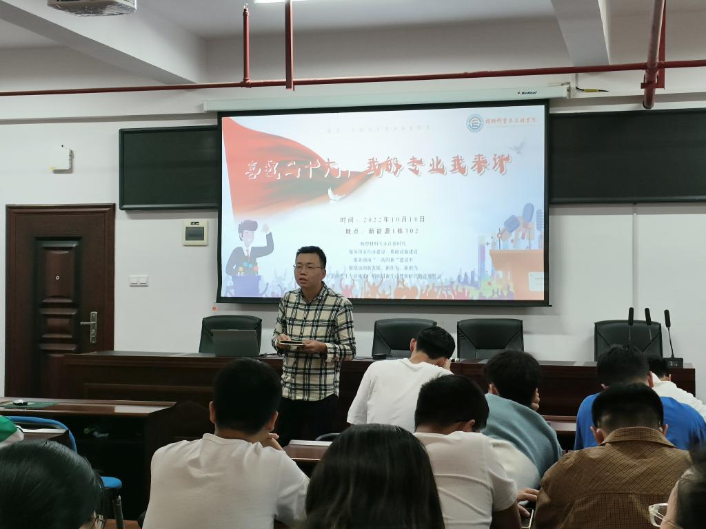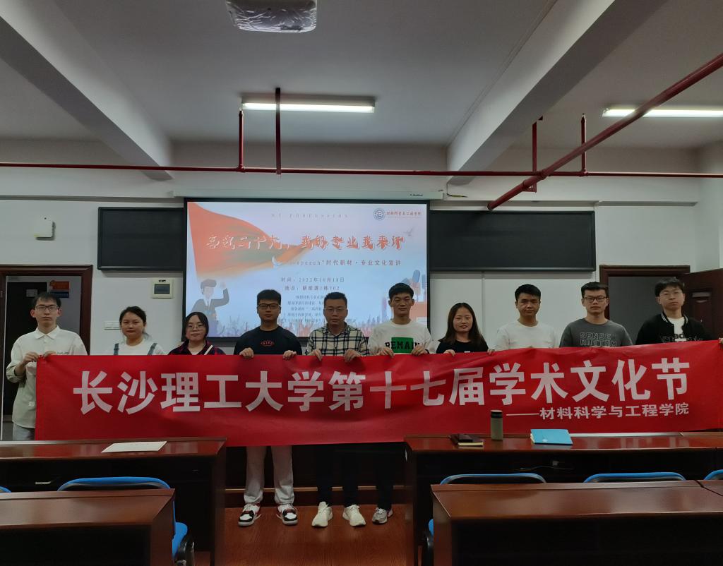 10月18日,材料学院于新能源大楼一栋A302举办长沙理工大学第十七届学术文化节,开展“喜迎二十大,我的专业我来讲”主题宣讲比赛,此次比赛包括两部分内容“i-idea” 研究生学习成果分享和“i-Speech”时代·新材专业文化宣讲。研究生导师邹康宇、王艳霞、辅导员王志亮和谭方林担任比赛评委,全体22级研究生参加。