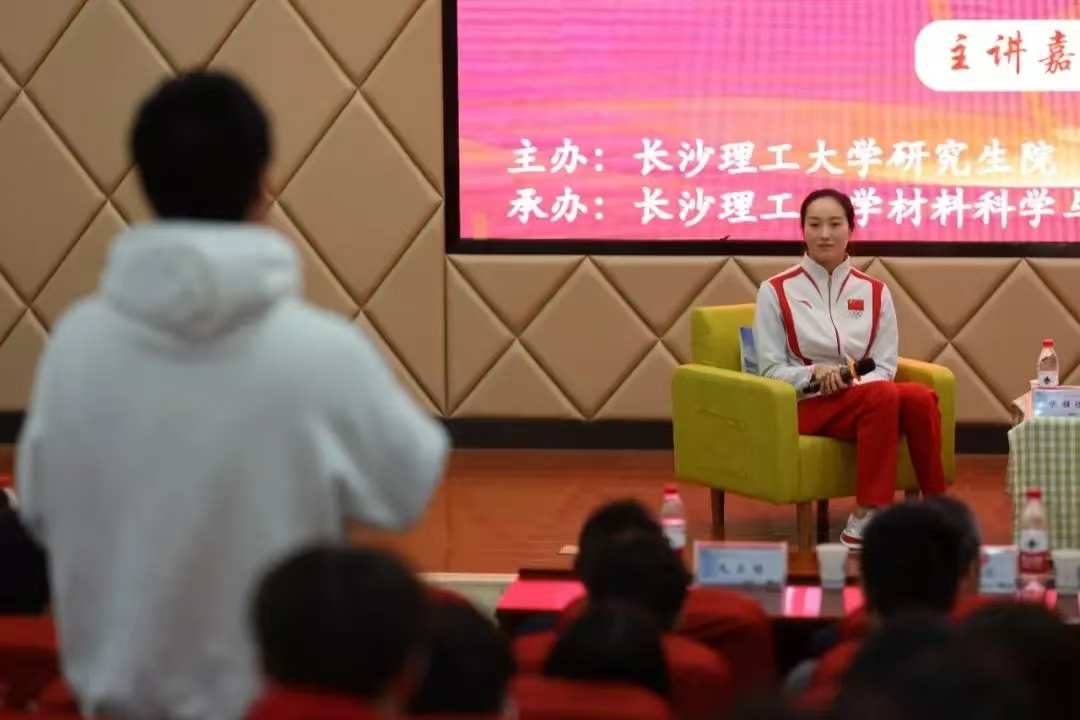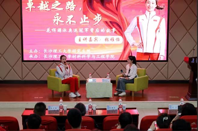 2024年10月25日下午,长沙理工大学第十六届研究生云影讲坛特邀花样游泳奥运冠军张雅怡作专题访谈。本次论坛活动由长沙理工大学研究生院主办、材料科学与工程学院承办。长沙理工大学党委委员、副校长胡永乐,材料学院院长毛卫国,研究生院副院长、研工部部长闾兰,材料学院党委副书记邵巧艳、副院长谢炜出席活动。本次讲坛由材料科学与工程学院陈心竹主持,近300名长理学子参与活动。