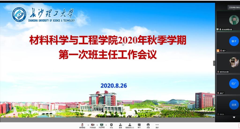 为进一步做好疫情防控常态下学生日常教育、思政教育和班级管理,充分发挥班主任和研究生导师的重要作用,材料学院于8月26日晚依托腾讯会议平台召开全院班主任及研究生导师工作会议,党总支副书记陈华、各年级班主任、研究生导师和辅导员参会。