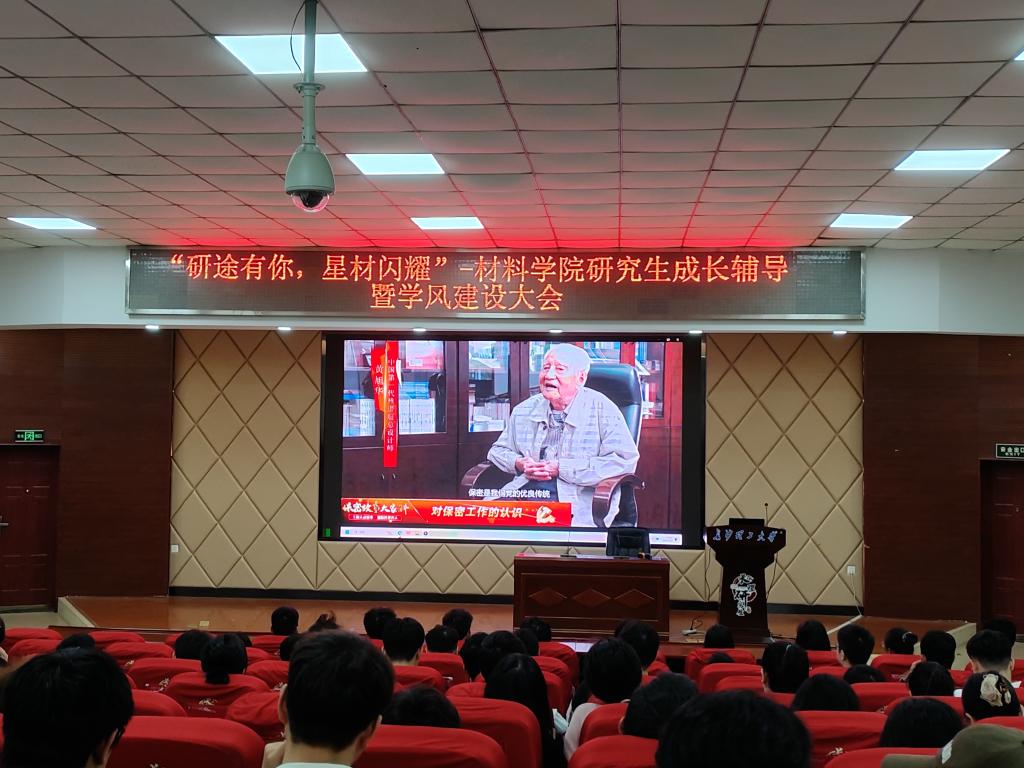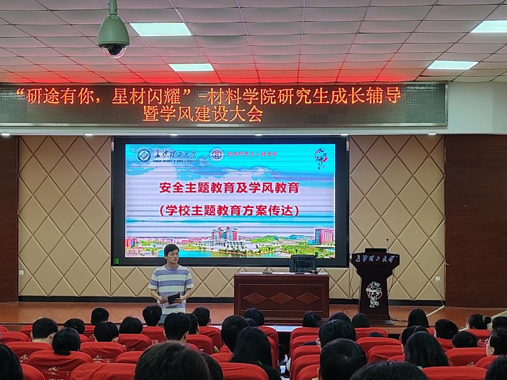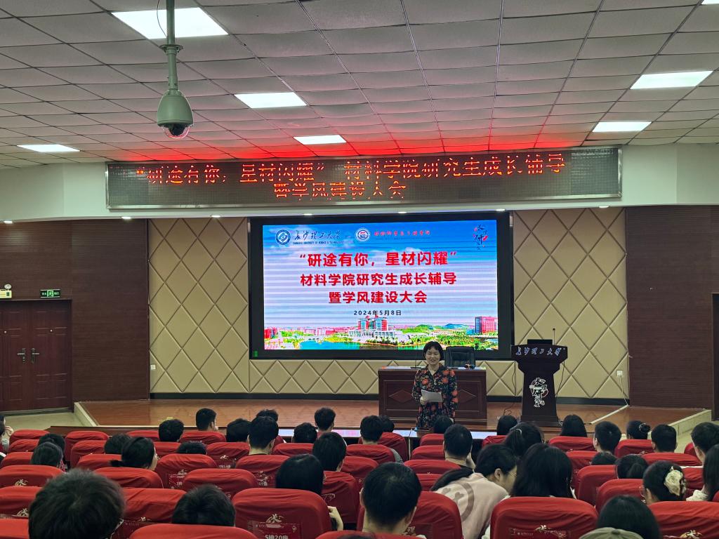 5月8日下午,材料学院在文科楼A200报告厅顺利召开“研途有你,星材闪耀”研究生成长辅导暨学风建设大会,院党委副书记邵巧艳出席会议,会议由研究生辅导员王志亮主持,学院全体研究生180余人参加。