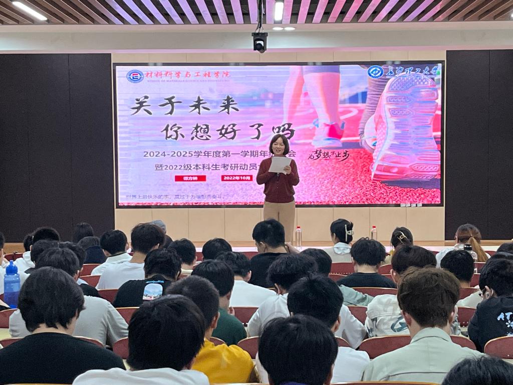10月15日,材料科学与工程学院2022级本科生“关于未来,你想好了吗”主题年级大会在云塘校区工科三号楼A201报告厅成功举办。学院党委副书记邵巧艳、2024级辅导员兼就业指导老师谢易真、2023级辅导员李心怡出席本次大会,大会由年级辅导员谭方林主持。