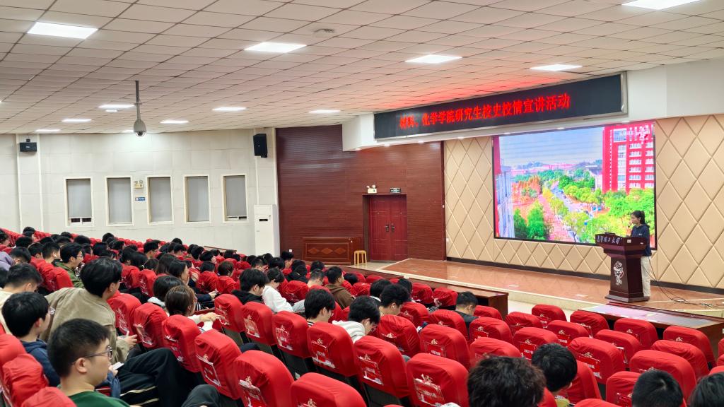 10月29日19:00,材料科学与工程学院联合化学与医药工程学院于文科楼A200报告厅举办校史校情宣讲会,面向学院2025级研究生新生介绍长沙理工大学发展历程,并开展互动。