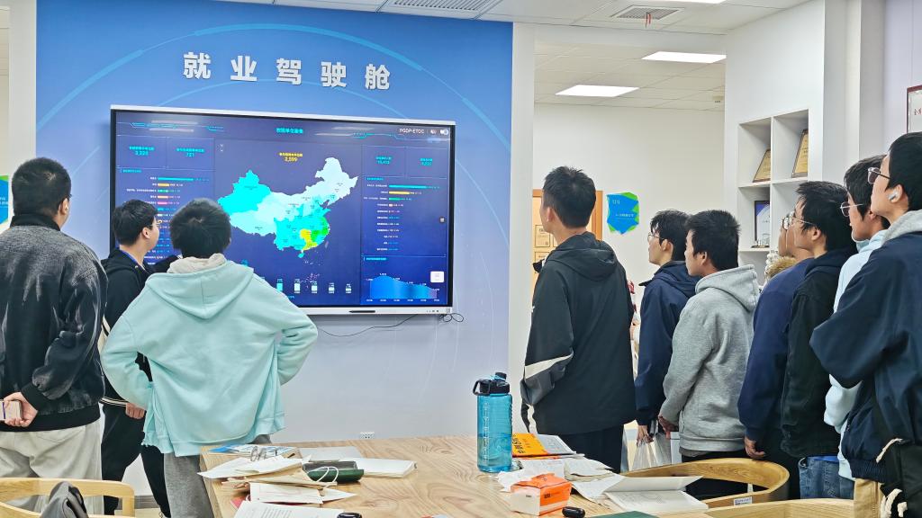 讲解员从学校整体就业工作布局切入,介绍了雷竞技官网创新创业与就业工作的开展情况,实地体验了“就业驾驶舱”大数据平台,通过可视化数据了解各专业毕业生的就业流向与发展趋势。AI远程面试间也吸引了不少同学驻足体验,大家纷纷表示,这些智能化、可视化的就业辅助工具让他们提前感受到求职场景,有助于早做准备、明确方向。
