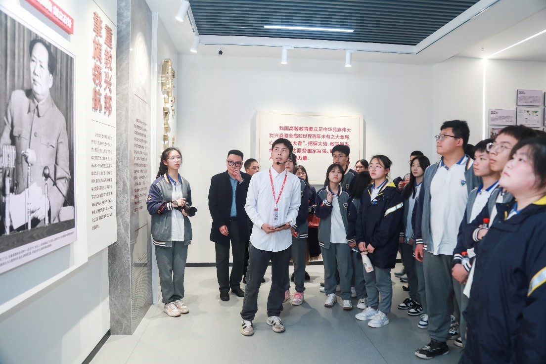 期间,长沙市同升湖高级中学近百名师生参观了长沙理工大学“三全育人”教育基地,在工作人员的讲解下,走过了“国之大者”、“材之茂者”、“师之贤者”、“行之实者”四个篇章,对长理深厚的历史沉淀和丰硕的育人成效有了深刻的体会。师生一行还参观了风工程与风环境研究中心、航空发动机涂层实验室、新能源电池实验室、大型材料分析设备实验室。同学们通过走访科研一线,深入了解了专业研究方向、增进了科研兴趣、明确了学业生涯规划目标,真正感受到了前沿科技的魅力,对未来的大学生活有了更多期待和憧憬。