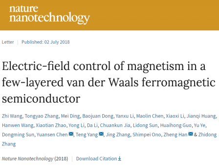 近期,雷竞技官网材料学院湖南省团队百人计划丁美教授与中科院金属所韩拯研究员,张志东研究员,山西大学光电研究所陈院森研究组、金属所杨腾副研究员、重庆大学孙立东教授等合作,联合国内外多家单位成功在Cr2Ge2Te6少数层本征铁磁二维半导体中利用固态门电压调控手段,实现了电荷与自旋的双重双极全电操控。该工作于7月2日在Nature Nanotechnology(影响因子:37.49) 杂志在线发表。