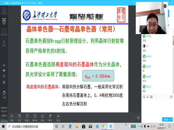 为保证线上课堂教学的顺畅,材料学院党总支张国强书记专门召开线上会议,要求各系部既要保障线上教学秩序,又要在课堂质量上下功夫,特别要结合疫情积极引导学生增强“四个自信”,坚定战“疫”信心。在2月17日的线上教学督查中,樊哲琼、丁美、罗文斌等老师都能将思政教学元素融入专业课程之中,寓价值观引导于知识传授之中,线上教学学生反馈非常好。