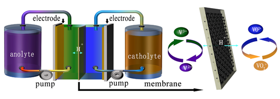 图 2 钒电池与Nafion/GO复合膜示意图
