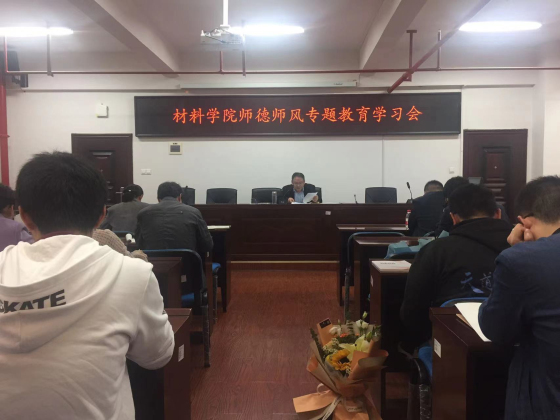 为进一步加强学院师德师风建设,教育、引导全院教职工爱岗敬业,规范职业行为,明确道德底线,提升师德水平,营造风清气正的育人环境,11月2日下午3:30,材料学院在新能源大楼1-317会议室召开了师德师风专题教育学习会,全体教职工参加了会议,会议由院党总支书记唐超文主持。