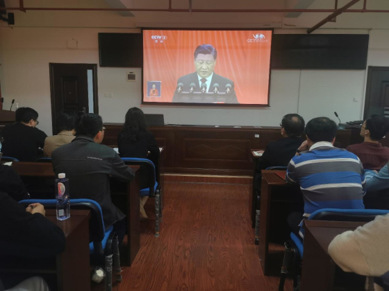 2022年10月16日,中国共产党第二十次全国代表大会于上午10时在北京大会堂隆重召开。习近平总书记代表十九届中央委员会向大会作报告。材料科学与工程学院全院师生热切关注大会召开。上午,学院领导与教职工代表,学生党员、学生干部代表共147人分别在新能源大楼一号楼302、303、317会议室集中收看中国共产党第二十次全国代表大会开幕会,其他老师和学生也以各种方式,认真收听收看了二十大开幕会,大家精神振奋,热情高涨。