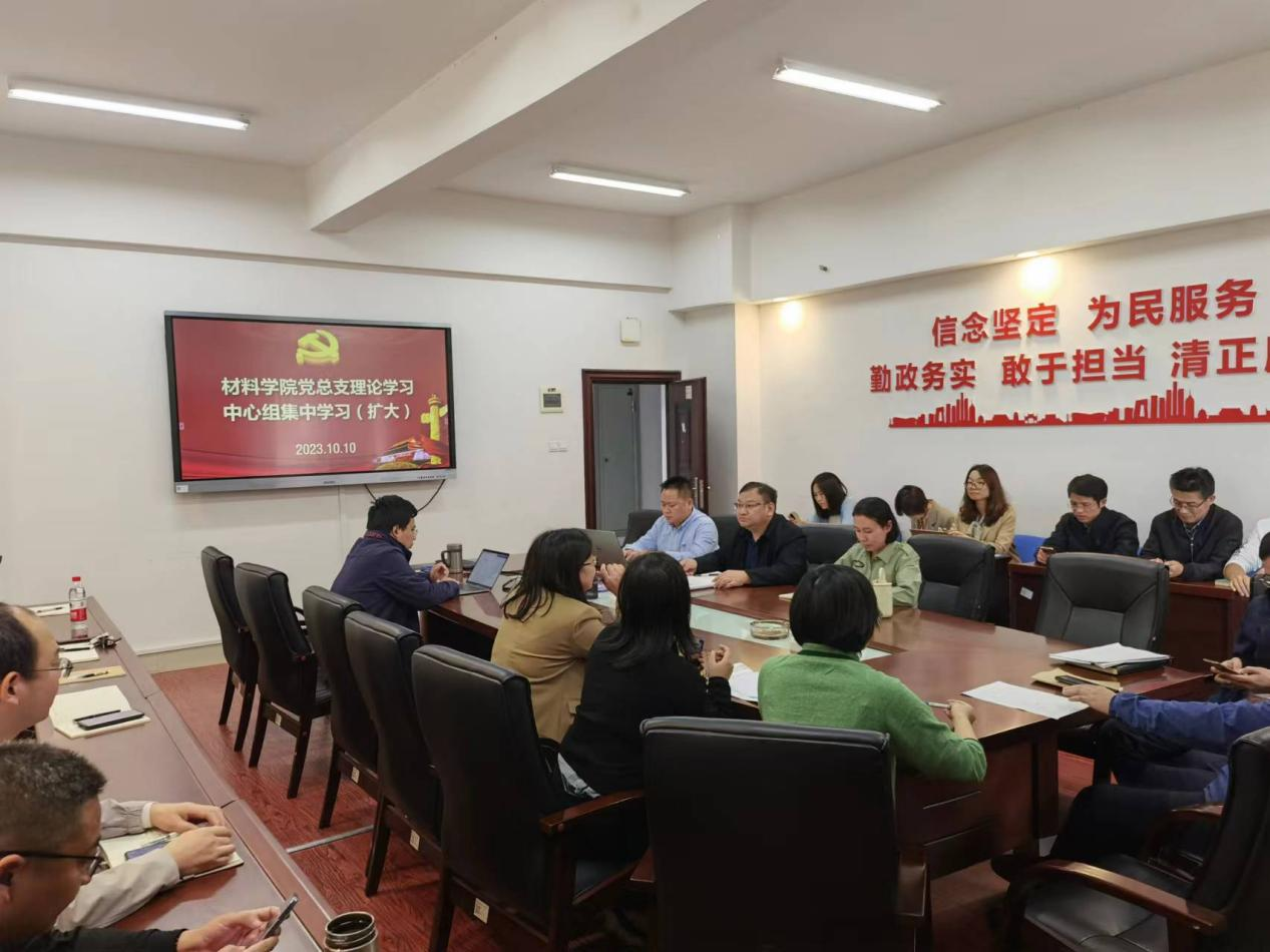 2023年10月10日下午,材料科学与工程学院党总支理论学习中心组(扩大)在新能源大楼1-317开展集中学习,学习由院党总支书记唐超文主持,中心组成员、本科教育教学审核评估工作组成员参加学习。