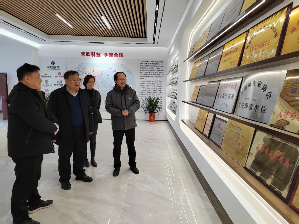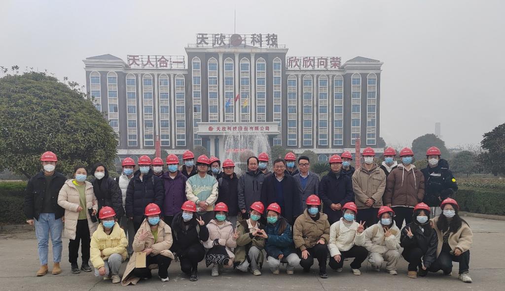 在湖南天欣科技有限公司,唐超文一行参观了公司展厅和生产车间,充分肯定了公司的发展成就,并向公司颁授 “长沙理工大学材料科学与工程学院优秀实习实践基地”荣誉牌,以感谢公司多年来对我院人才培养工作的支持。此后,学院领导看望了正在公司实习的无机非金属材料工程专业20级本科生和周哲、易文君、范习之、刘子玉四名带队教师。唐超文书记与师生进行了亲切交谈,深入了解学生的实习收获和住宿、饮食等生活情况,提醒学生严格遵守公司各项规定,出入施工场所要注意安全、加强防护。