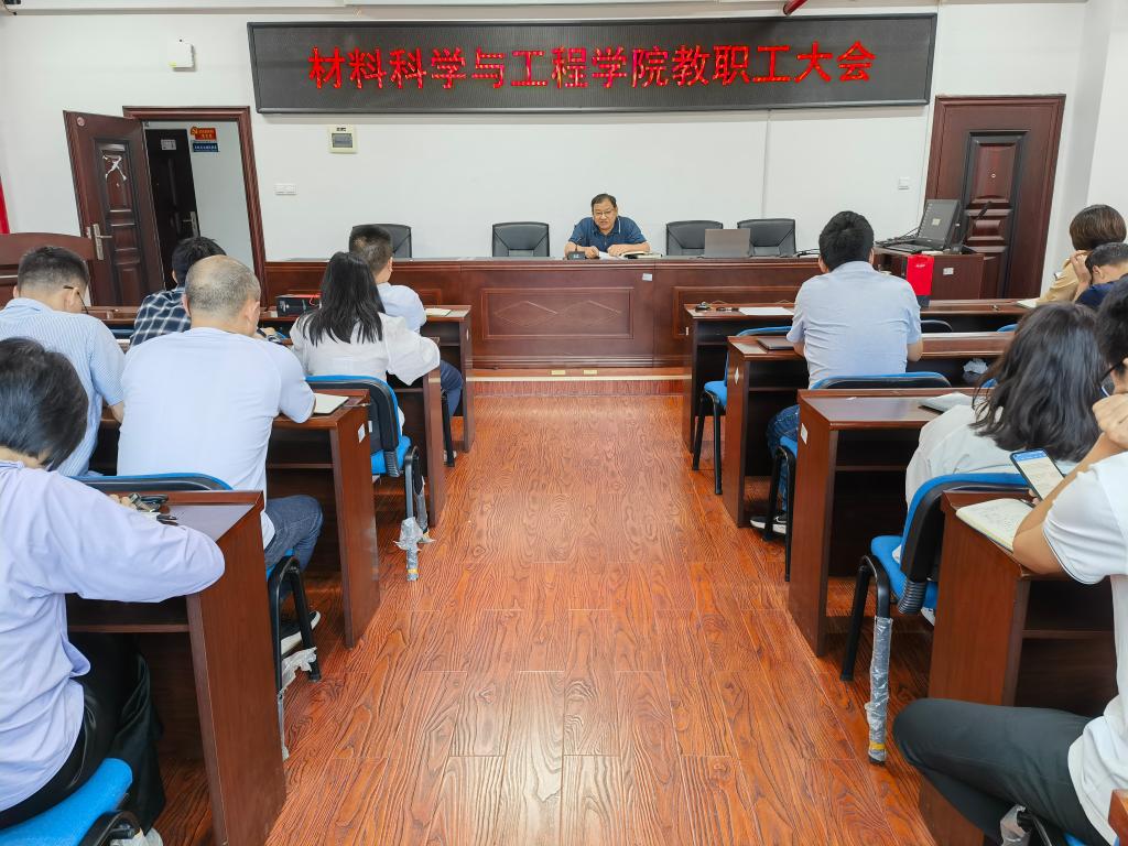 2024年6月4日下午,材料科学与工程学院在新能源大楼1-302召开全体教职工大会,大会由院党委副书记、副院长邵巧艳主持,学院全体教职工参加。