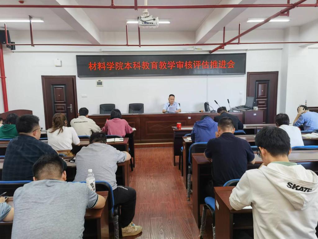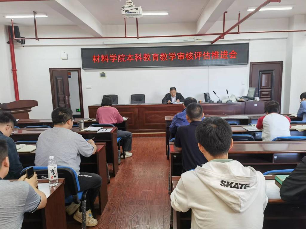 2023年10月17日下午2点,材料学院在新能源1号大楼302会议室召开本科教育教学审核评估工作推进会,会议内容是就本科审核评估推进工作进一步安排部署,材料学院全体教职工到场参加会议。