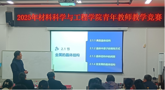 为深入贯彻落实“以本为本”教育理念,推动教学创新与青年教师队伍建设,12月9日,我院举办了2025年青年教师教学竞赛。本次竞赛以“聚焦教学创新,赋能未来材料人”为主题,旨在通过“以赛促教、以赛促学、以赛促改、以赛促建”,全面提升青年教师教学能力,为学校“百强大学”建设和学院博士点申报工作夯实人才基础。本次竞赛得到校工会的大力支持。