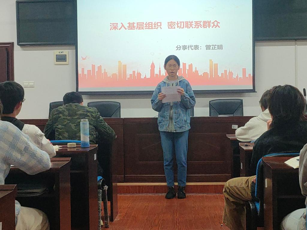 会议伊始,任雨垚同志对此次寒假社会实践做出总结概括。随后,每个实践团队进行成果分享,实践涉及乡村振兴改革建议、理论学习与宣讲、社会调查等多方面的内容,充分发扬了党员的奉献精神,发挥学生党员先锋模范作用。接下来,黄重境、韩龙、王巍锝等同志作为代表分享了自己秉持为人民服务的初心,了解社会需求,深入基层服务群众的经历,在实践中实现自身价值,留下奋斗足迹。大家纷纷表示,通过此次社会实践,在基层工作中锻炼了党性修养和处理问题的能力,也表达了不忘初心跟党走,到群众最需要的地方去,到服务百姓的最前沿去,扎根基层的追求。最后,谭方林老师进行总结,表示作为共产党员,要以主人翁意识建设国家,为实现共产主义奋斗终生。