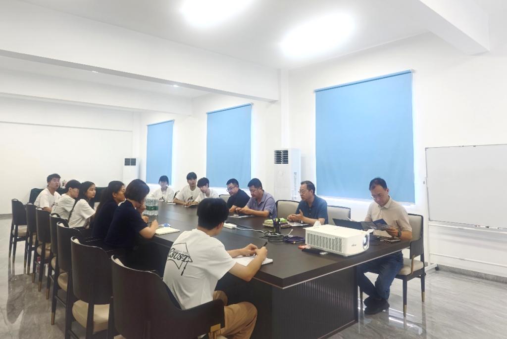 参观完生产车间后,实践团成员再次走进公司会议室继续开展会谈交流。经过生产车间的实地参观调研后,实践团成员有了更多想法,在会谈上成员们积极踊跃地跟公司领导请教和咨询,会谈气氛热烈,大家畅所欲言。邵巧艳热情详细地向公司领导介绍了材料科学与工程学院,并就共建产学研基地、校企深度合作等进行讨论。郭吉平诚恳表示,公司十分愿意承担一定社会责任为高校提供实践教学与科学研究的实际场所,公司更愿意继续探索与长沙理工大学开展更多更深入的合作模式,希望以后加强往来,为推进新的合作模式、建成产学研基地而开展更多交流与合作。
