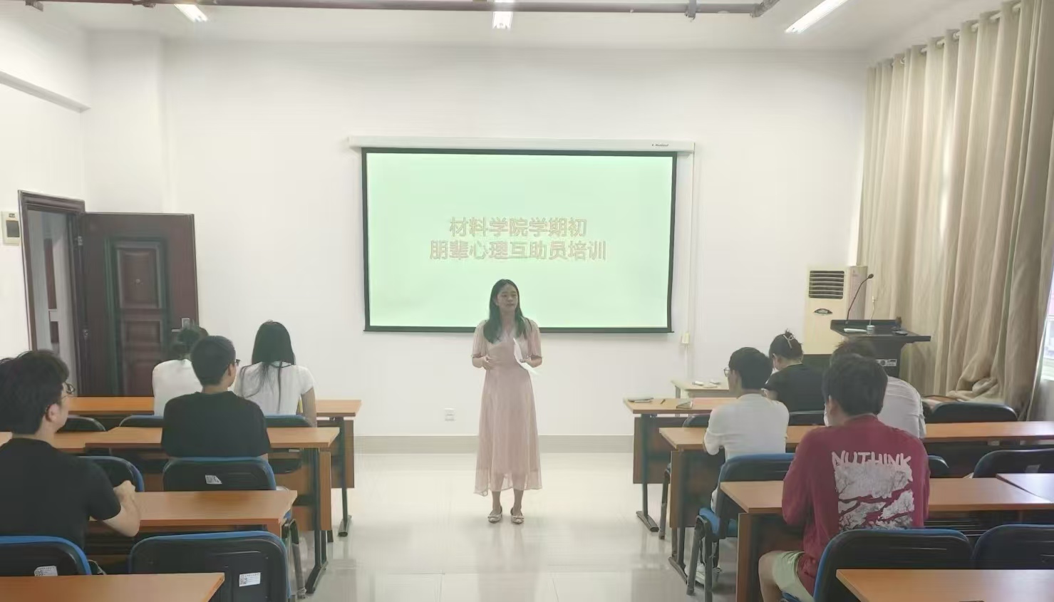 9月10日下午,材料科学与工程学院于新能源一号楼804室举行了学期初的朋辈心理互助员培训会。此次会议由心理辅导员谢易真老师担任主讲人,学院全体朋辈心理互助员参会。