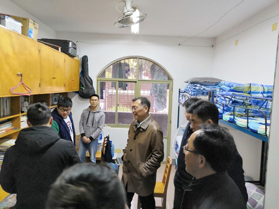 谈传生一行先后走访了西一、西五、西六、西十一等楼栋部分寝室,与城南、经管、电气、建筑、文法等学院部分同学亲切交流,仔细询问了学业发展、就业、生活等各方面情况,查看了学生寝室内务卫生状况,鼓励大家根据专业特点提升综合技能,以文明寝室创建为契机促进良好习惯的养成和文明素养的提升。谈传生还仔细察看了各楼栋设施建设情况,针对存在的安全隐患和不够清洁等问题,向公寓中心相关负责人提出了整改要求。