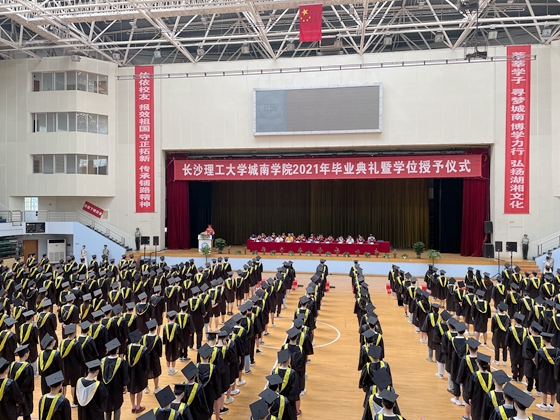 毕业骊歌起,相顾却依依。6月25日下午,城南学院在金盆岭校区体育馆举行2021届本科生毕业典礼暨学位授予仪式。副校长刘朝晖、钱国平,城南学院董事长洪源渤,学校有关职能部门负责人、教学院代表、城南学院领导、教师代表、部分家长及2021届毕业生参加典礼。典礼由长沙理工大学副校长谈传生主持。
