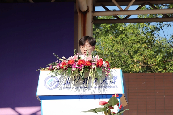 新生代表、经济管理系李琢同学代表全体新生感谢了为他们成长付出艰辛劳动的父母和老师,表达了对进入城南开始大学学习的美好憧憬。他代表全体新生表示,一定珍惜时光,努力学习专业知识,不断开拓视野,为今后的理想与人生目标打下坚实的基础,将灿烂的青春谱写成一幅色彩丰富的恢弘画卷。