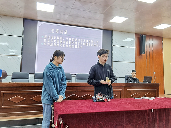 12月14日下午,城南学院在四教报告厅举办第十三届电子设计大赛决赛。电气与信息工程学院罗玉雄、马钧、肖鸿三位老师担任评委。院长赵华,院党委书记李修春、副书记陶传谱,副院长刘洪深、朱广峰及相关师生观看比赛。
