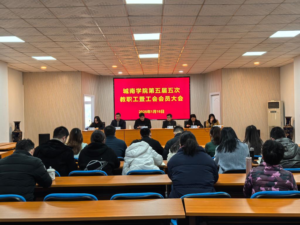 1月16日上午,城南学院在金盆岭2-202召开了第五届五次教职工暨工会会员大会。全院教职工与会。会议由院党委副书记陶双主持。
