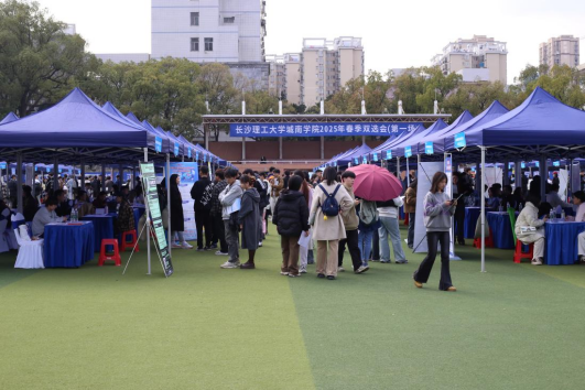 为深入贯彻落实党中央、国务院“稳就业”、“保就业”决策部署,促进高校毕业生高质量充分就业,3月18日,长沙理工大学城南学院在田径场举办2025年春季首场双选会。此次双选会是2025年我院毕业生就业服务攻坚行动的重要组成部分,得到了得到了长沙市天心区人社局、金盆岭街道、东莞市人社局、湖南省人才市场、浏阳经开区人才中心等多地政府部门的大力支持,成为校地合作与沟通的高效平台。