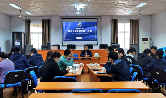 11月17日下午,城南学院在金盆岭校区二教2楼会议室开展本学期第二场辅导员职业能力提升沙龙活动。校团委书记王学成主讲,院党委副书记陶传谱主持,城南学院全体辅导员参加了活动。