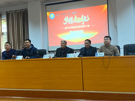 1月10日下午,电气工程系在二教201会议室召开2020级学生班会暨表彰大会。会议由黄晨雅、张锌果同学主持。院党委副书记陶传谱、副院长朱广峰、关工委常务副主任姚跃华、电气工程系黄黎明、班主任罗玉雄老师以及相关学生参加会议。