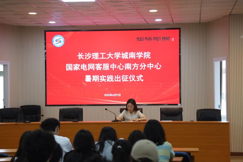 6月9日,长沙理工大学城南学院“国家电网客服中心南方分中心暑期社会实践活动”出征仪式在二教201会议室举行。学院党委副书记陶双、团委书记李诺、电气工程系辅导员向陈及全体实践学员共同参与此次启动仪式。