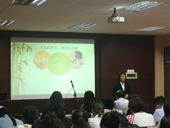 6月14日晚,由长沙理工大学关工委主办,长沙理工大学团委承办的“立德修身 诚信为本”主题演讲比赛在工一A428举行,校关工委常务副主任王乃厚、宣传部副部长邓崛峰、组织部副部长彭霞、教务处副处长刘思强以及团委副书记文丽丽担任本次比赛的评委,校团委书记陈曦、文法学院关工委常务副主任黄凤英以及相关师生观看了此次比赛。