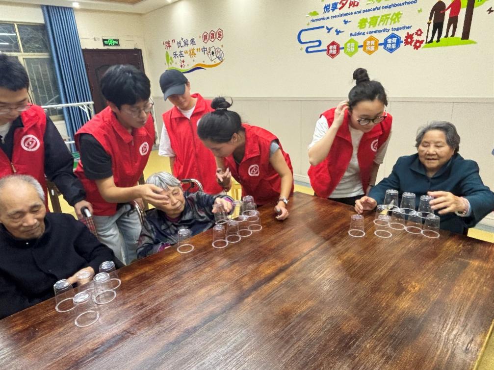 紧接着,志愿者们引领老人们共同参与了一场别开生面的纸杯叠叠乐游戏,一同搭建起一座座纸杯塔。尽管过程中不乏挑战与失败,但在志愿者们的耐心指引与鼓励下,老人们渐渐掌握了技巧,现场洋溢着欢声笑语,彼此间的心灵距离也随之拉近。