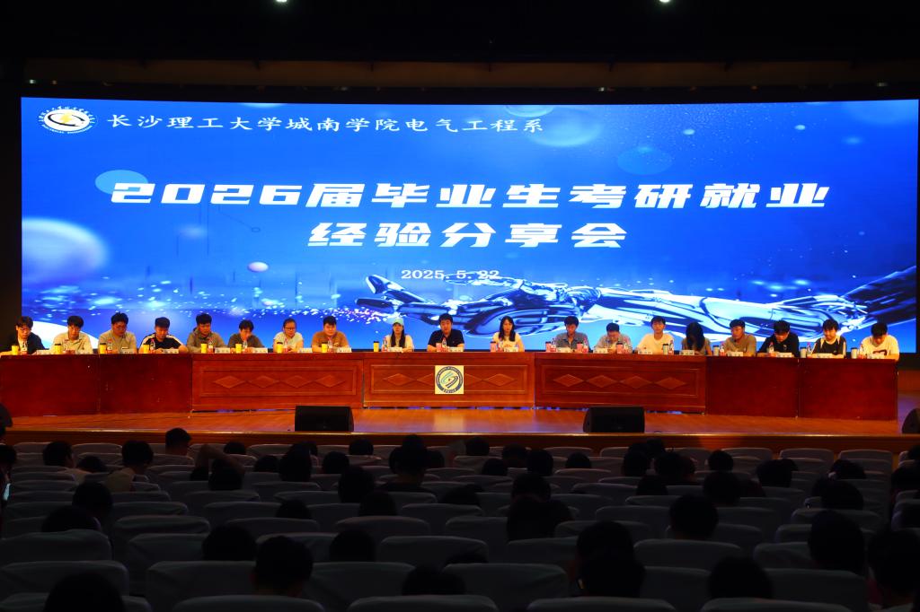 5月22日晚,城南学院电气工程系在五教大礼堂举办2026届毕业生就业实习动员大会暨经验分享交流会,电气系学工办主任、24级辅导员王志鹏、23级辅导员刘心汝、22级辅导员向陈与21级16名优秀毕业生代表参加。本次大会聚焦考研、就业、国网备战、公职考试四大方向,通过经验分享与互动答疑相结合的方式,助力学子明晰发展方向。