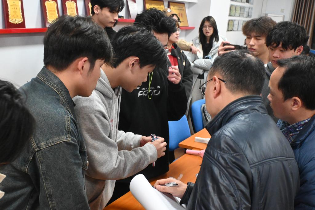 比赛全程历时两小时,流程规范有序,评审严谨公正。现场氛围紧张而热烈,参赛学生充分展现出扎实的专业基础、清晰的逻辑思维与饱满的参赛热情。点评环节中,马钧表示,本次大赛为学生搭建了理论联系实际的优质平台,有效锤炼学生自主思维能力,切实提升动手操作水平。范必双强调,当下AI是电子设计的重要辅助工具,但核心逻辑思维能力才是创新关键,希望学生善用工具的同时,深耕自身核心能力培养,夯实专业根基。