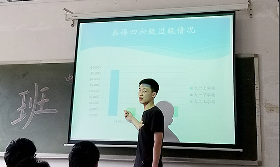 会上,各班学委对所在班级上学期期末的个人成绩作出总体汇报(包括排名、挂科率等在内五个方面),根据各班具体情况的不同,采取不同方式对本班成绩作出具体分析。大多数班级对班上每位同学的成绩作出折线统计图,通过与其以往成绩和班级平均成绩的对比,清晰明了地反映出每个人是进步还是退步,并客观理性地逐个分析原因,提出解决对策。