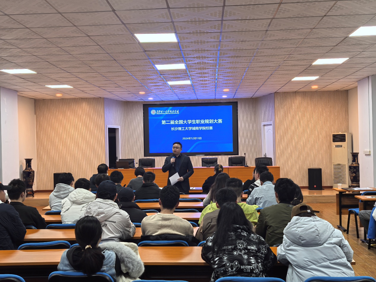 20241213日,长沙理工大学城南学院在金盆岭校区二教201举办了第二届全国大学生职业生涯规划大赛校赛总决赛。此次大赛以“职业导航·梦想起航”为主题,旨在通过一系列实践活动,全面提升学生的职业生涯规划能力,增强其就业竞争力,同时促进学院就业指导服务的创新与升级,为学生未来的职业生涯奠定坚实的基础。